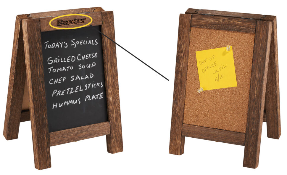 August 8, 2017Read moreCaptiv8 Supply: This Wooden Easel Stand has a corkboard side for post it notes and a chalkboard on the other...